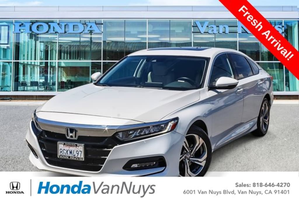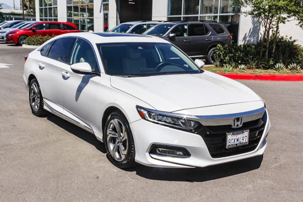 CARFAX One-Owner. Clean CARFAX. Certified. White 2018 Honda Accord EX-L FWD CVT 1.5T I4 DOHC 16V Turbocharged VTEC 17" Machine-Finished Alloy Wheels, Apple CarPlay/Android Auto, Blind Spot Information (BSI) System warning, Exterior Parking Camera Rear, Heated front seats, Leather-Trimmed Seats, Power moonroof.