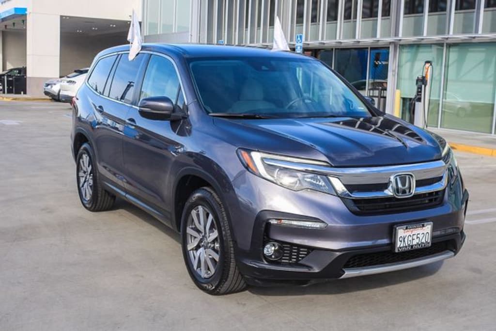 Certified. Gray 2021 Honda Pilot EX FWD 9-Speed Automatic 3.5L V6 24V SOHC i-VTEC 182 Point Vehicle Inpection, 18" Machine-Finished Alloy Wheels, 3rd row seats: split-bench, Apple CarPlay/Android Auto, Blind Spot Information (BSI) System warning, Exterior Parking Camera Rear, Forward collision: Collision Mitigation Braking System (CMBS) + FCW mitigation, Heated Front Bucket Seats, Lane departure: Lane Keeping Assist System (LKAS) active, Spoiler.