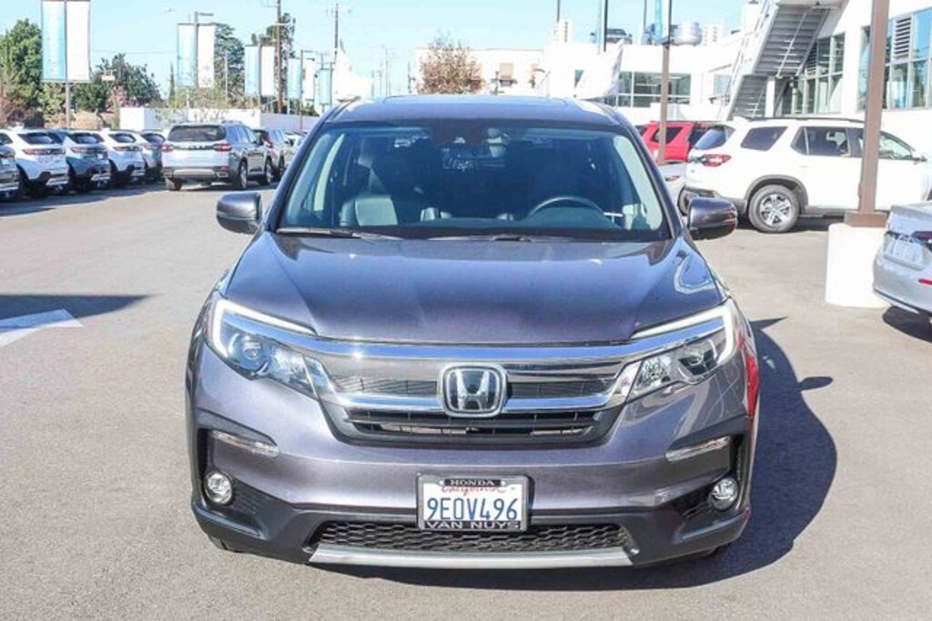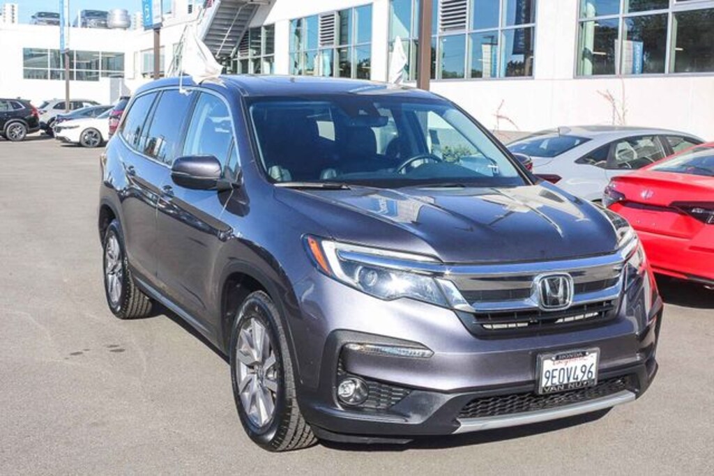 CARFAX One-Owner. Clean CARFAX. Certified. Gray 2022 Honda Pilot EX-L FWD 9-Speed Automatic 3.5L V6 24V SOHC i-VTEC 182 Point Vehicle Inpection, 18" Machine-Finished Alloy Wheels, 3rd row seats: split-bench, Apple CarPlay/Android Auto, Blind Spot Information (BSI) System warning, Exterior Parking Camera Rear, Forward collision: Collision Mitigation Braking System (CMBS) + FCW mitigation, Front Bucket Seats, Lane departure: Lane Keeping Assist System (LKAS) active, Leather Seat Trim, Power Liftgate, Power moonroof, Spoiler.