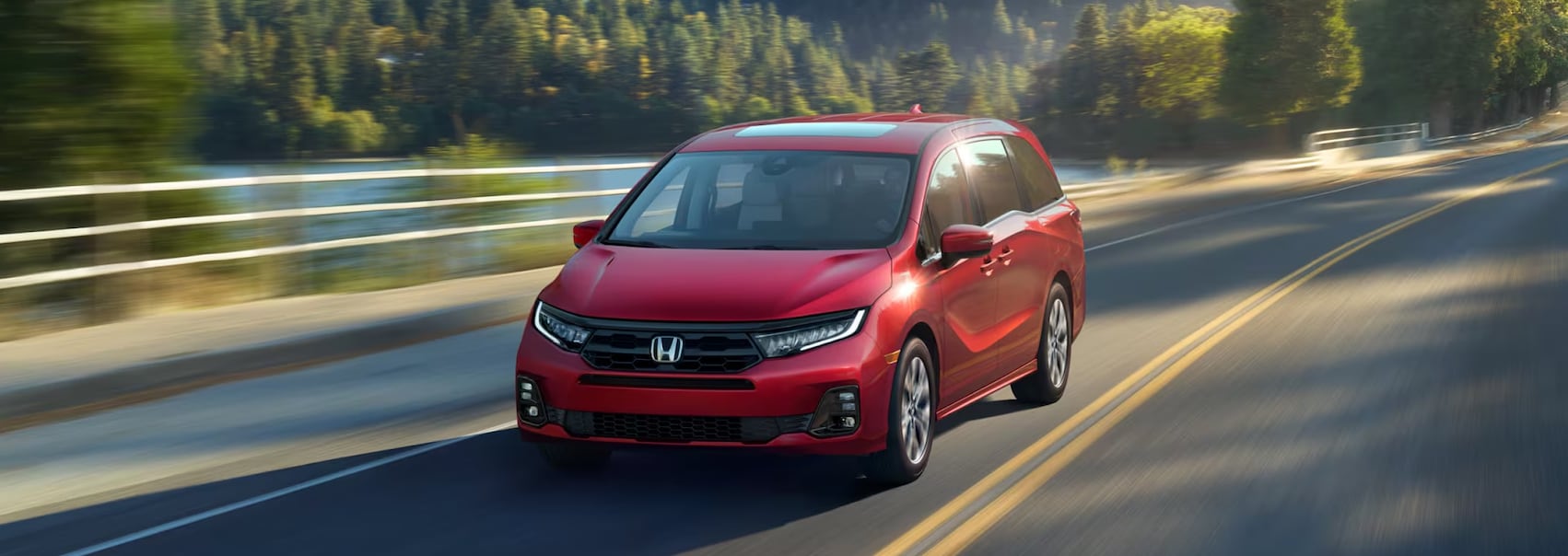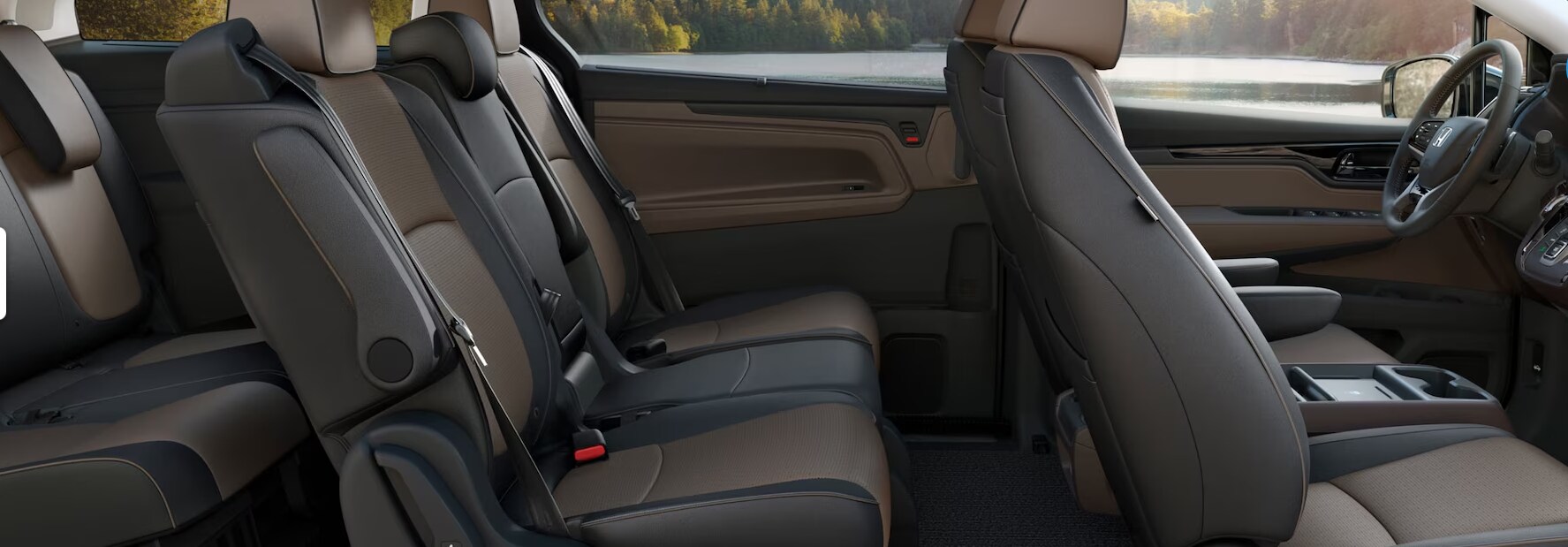 All four Honda Odyssey trims are fantastic, but if you want to cruise the town in maximum style, choose the 2025 Honda Odyssey Sport-L. On the outside, this trim dazzles with 19-inch gloss black wheels, darkened taillights, and a black grille and window trim. In the cabin, kick back in a chic environment that features red ambient lighting and black leather upholstery with red stitching.