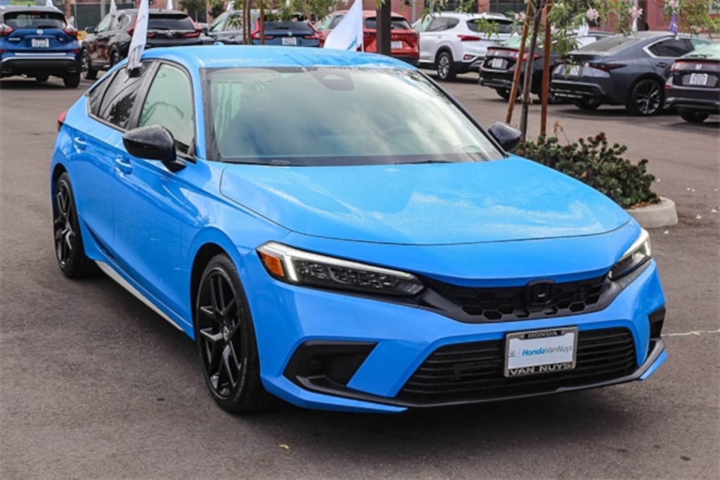 Clean CARFAX. Boost Blue Pearl 2022 Honda Civic Sport FWD CVT 2.0L I4 DOHC 16V
