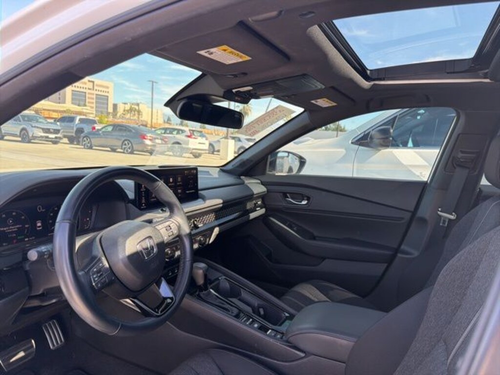 CARFAX One-Owner. White 2025 Honda Accord Hybrid Sport FWD eCVT 2.0L I4 DOHC 16V 182 Point Vehicle Inpection, Apple CarPlay/Android Auto, Blind Spot Information (BSI) System warning, Exterior Parking Camera Rear, Heated Front Bucket Seats, Lane departure: Lane Keeping Assist System (LKAS) active, Power moonroof, Steering wheel mounted audio controls, Wheels: 19" x 8.5J Berlina Black.