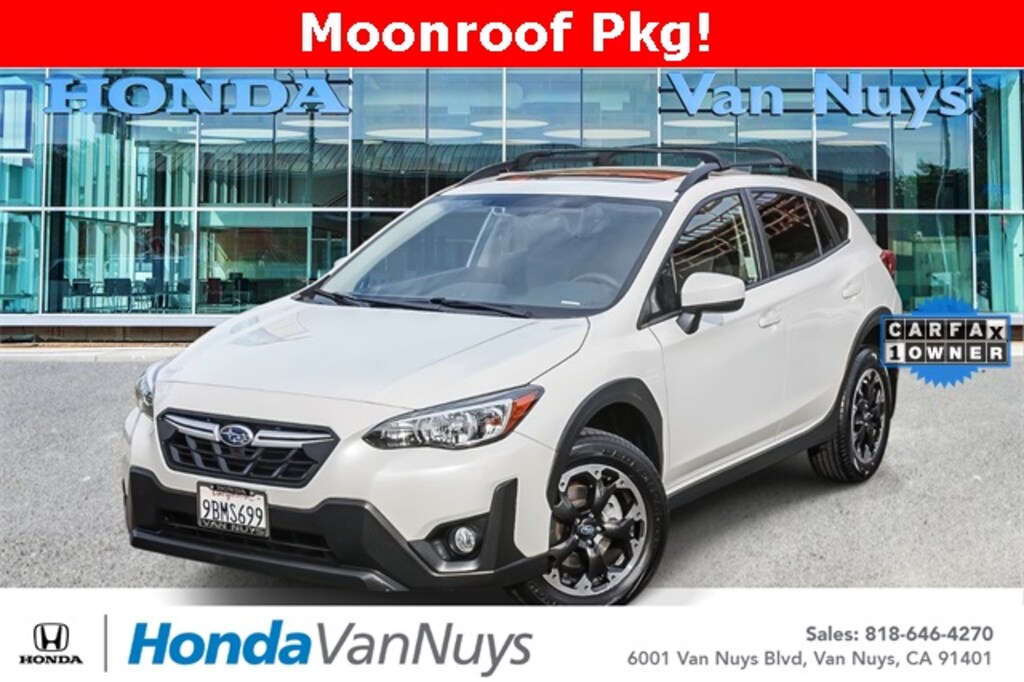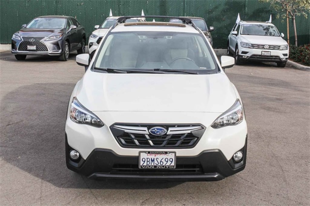 CARFAX One-Owner. Clean CARFAX. Crystal White Pearl 2022 Subaru Crosstrek Premium AWD Lineartronic CVT 2.0L 4-Cylinder DOHC 16V 6-Way Power Driver's Seat, All-Weather Floor Liners, Auto-Dimming Mirror w/Compass & HomeLink, Blind Spot Detection (BSD), Exterior Parking Camera Rear, EyeSight System, Heated Front Bucket Seats, Keyless Access w/Push-Button Start, Moonroof Package, Popular Package #2, Power Moonroof, Rear Bumper Cover, Rear Seatback Protector, Splash Guards, Steering wheel mounted audio controls.