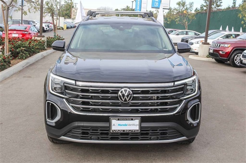 CARFAX One-Owner. Black 2024 Volkswagen Atlas 2.0T SE FWD 8-Speed Automatic with Tiptronic 2.0L TSI 3rd row seats: split-bench, Exterior Parking Camera Rear, Heated front seats, Perforated V-Tex Leatherette Seating Surfaces, Ventilated front seats.
